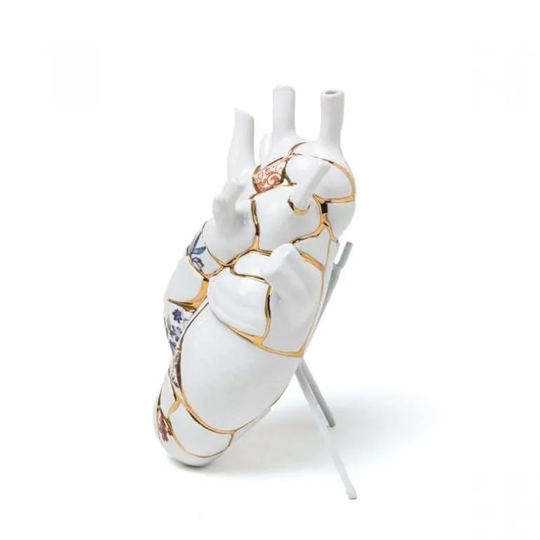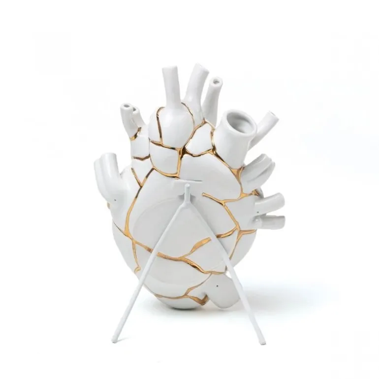 We brengen de bloemen via de aderen in het hart, alsof het hart de bol is waaruit de knoppen van gevoelens bloeien. Gebruik de Seletti Love in bloom Kintsugi als vaas of als decoratie stuk. Afmeting 16,5x9cm, hoogte 25cm.