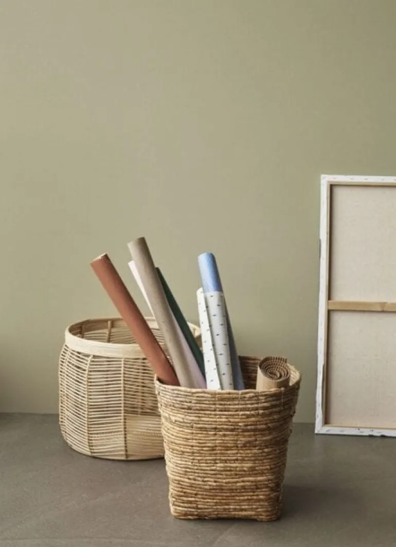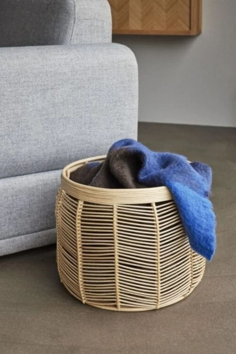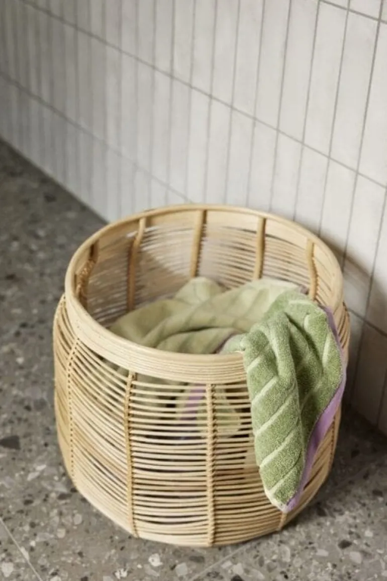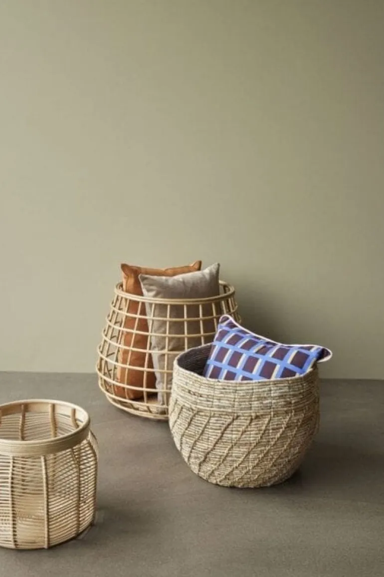 Set van 2 rotan manden, beide met een andere afmeting. De Hubsch Luna manden hebben een afmeting van ø34×30 en ø44x34cm.