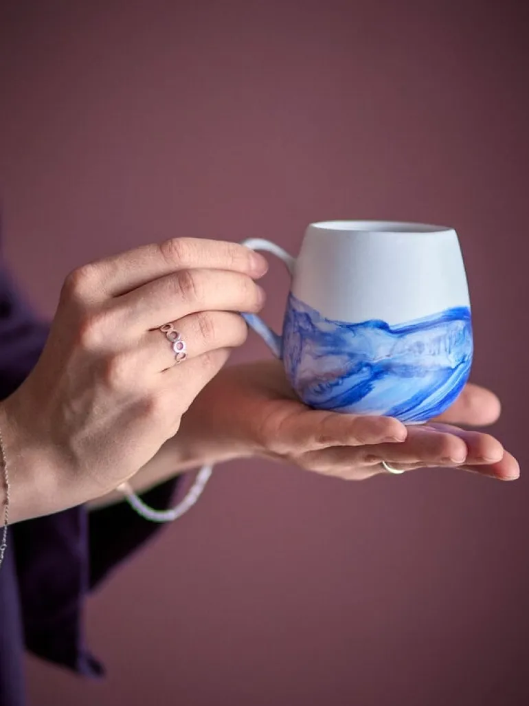 De Bloomingville Lyre Cmokken worden geleverd in een set van vier stuks. Gemaakt van aardewerk met een aquarelachtig effect in blauwtinten. Afmeting Ø8x8cm