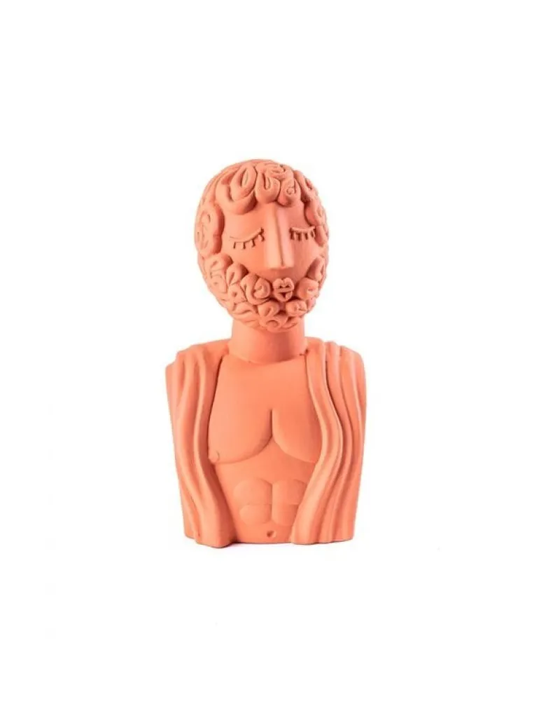 Prachtig object van het Italiaanse interieurmerk Seletti. Het Seletti Magna graecia terracotta bust man object heeft een afmeting van 24x20cm, hoogte 45cm. Leuk om te combineren met de andere items uit de Magna graecia serie.