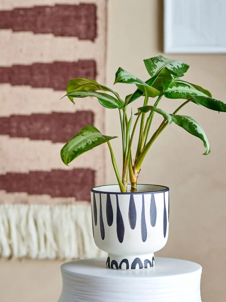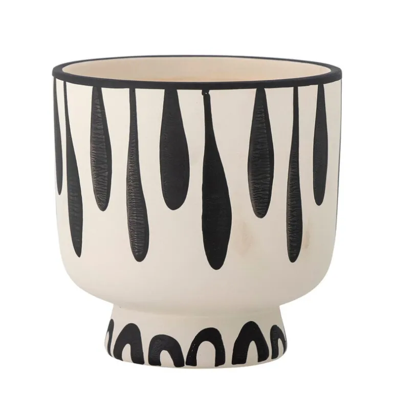 De Bloomingville Malena Bloempot is een mooie handgeschilderde bloempot in een mat witte glazuur met een patroon in een zwarte kleur. Omdat het met de hand beschilderd is, zal elke pot variëren en uniek zijn. Afmeting Ø16x16cm
