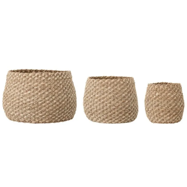 Mooie set manden van het Deense interieurmerk Bloomingville. Handig om spullen in op te bergen. De Bloomingville Malli manden worden geleverd in een set van 3 stuks. Afmeting D24xH23/D34xH27/D44xH30 cm