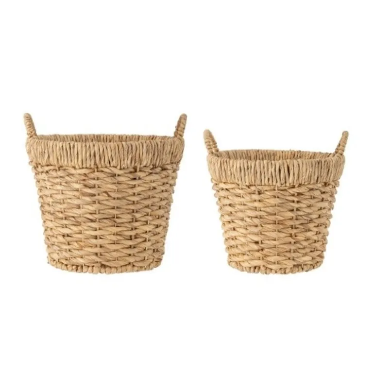 Set van 2 manden met verschillende afmetingen. De Bloomingville Maluna manden zijn gemaakt van waterhyacint en metaal. Afmeting Ø34x34cm en Ø39x38cm