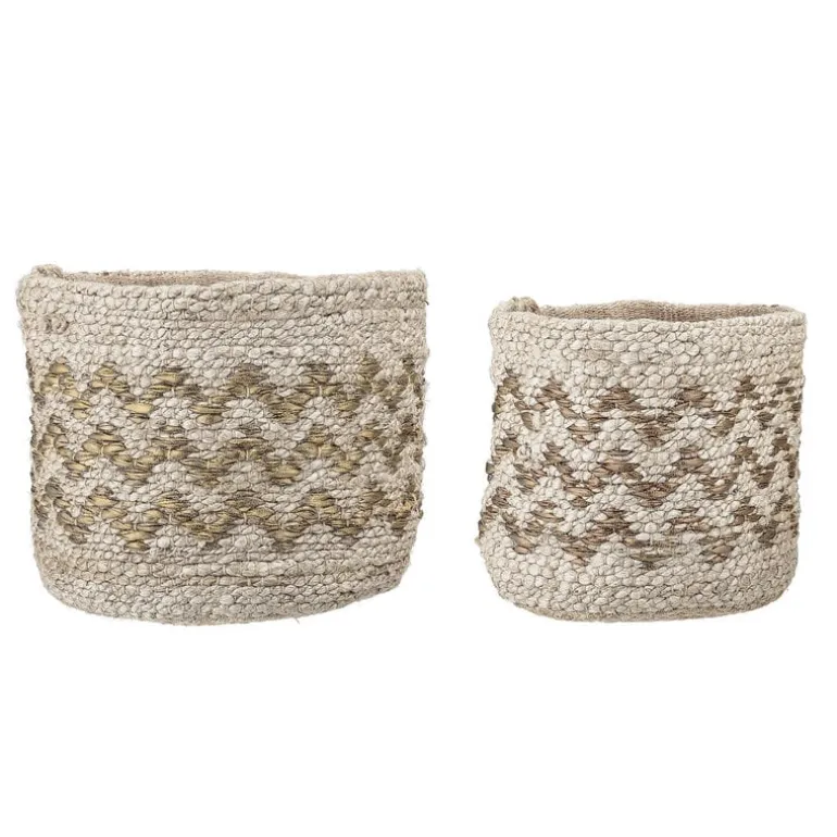 Prachtige Bloomingville manden gemaakt van jutte. Handig om spulletjes in op te bergen of een leuke plant in te zetten! Afmeting Ø20xH20 / Ø25xH25 cm, wordt geleverd in een set van 2 stuks.