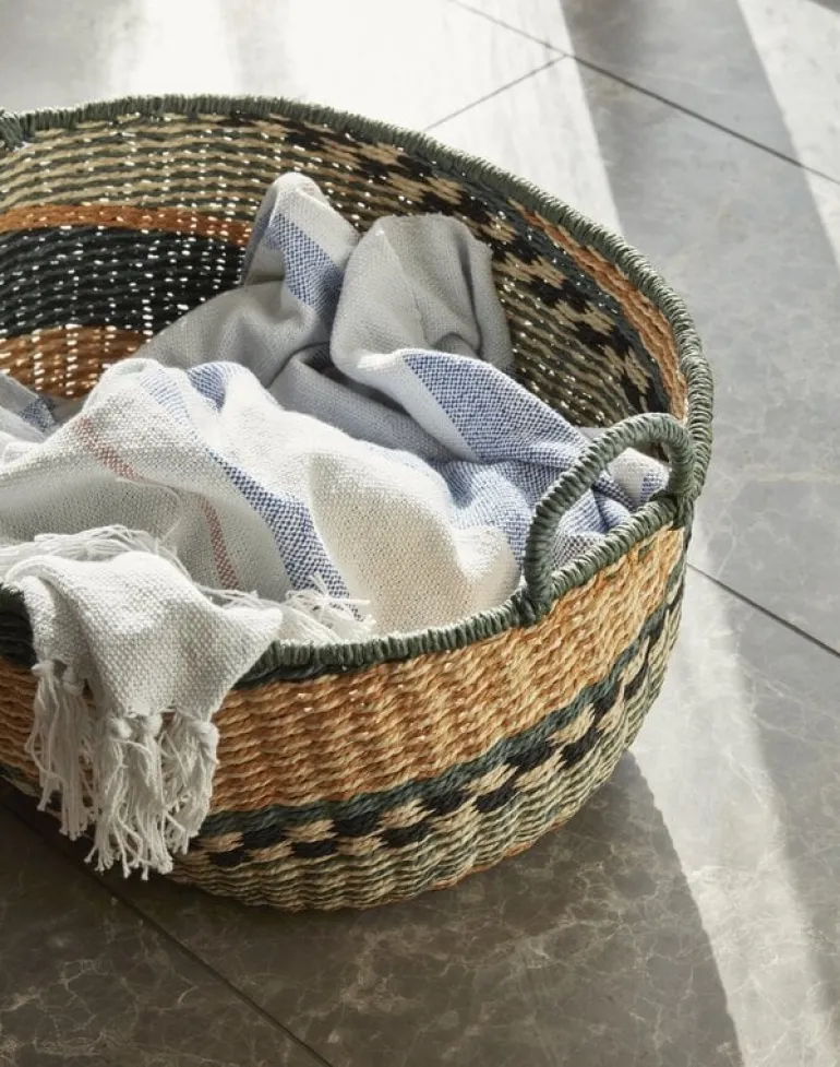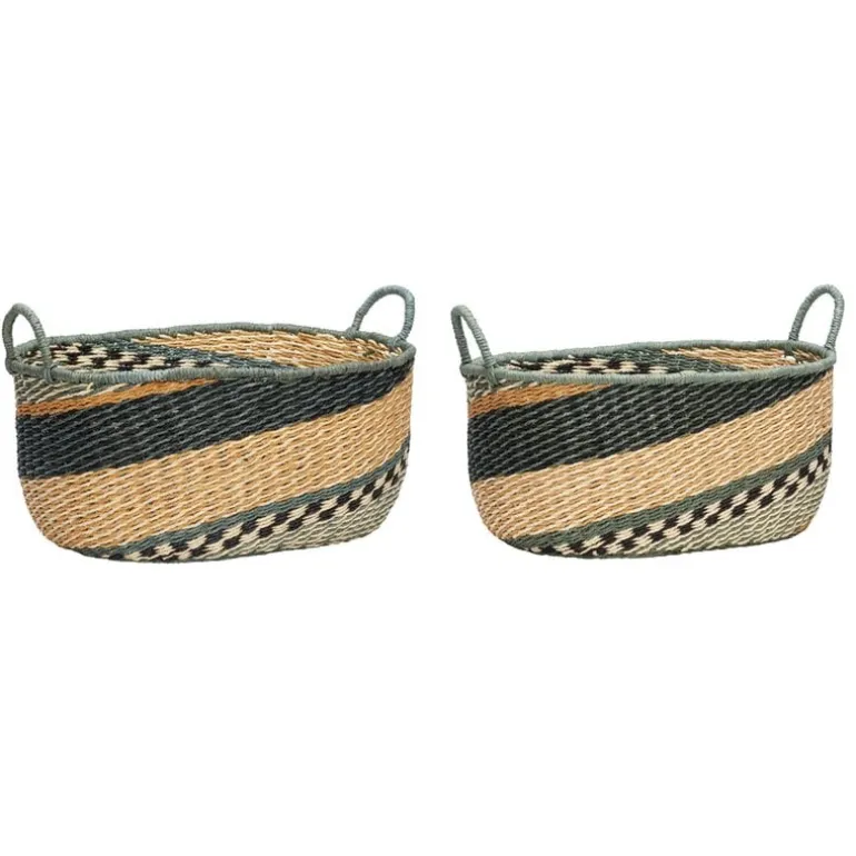 Prachtige set manden van het Deense interieurmerk Hubsch. Maak je interieur nog sfeervoller met deze mooie manden. De manden met handvatten worden geleverd in een set van 2 stuks. Afmeting 45x32xh22, 50x35xh23cm