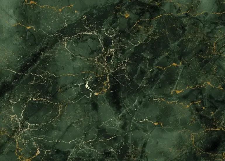 Frans Uyterlinde x KEK Amsterdam. Elegant marmerbehang met gouden accenten in hoogglans. Het KEK Amsterdam Marmer behangbehang heeft een afmeting van 292,2x280cm (6 banen). Beschikbaar in verschillende afmetingen.