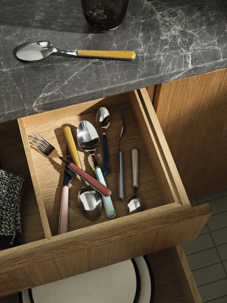 8-delige bestek set van Broste Copenhagen. De Broste Copenhagen Marstal bestek set is gemaakt van roestvrijstaal met plastic handvaten. Leuk detail zijn de leuke kleurtjes aan beide zijdes. Afmeting 1,85x22cm.