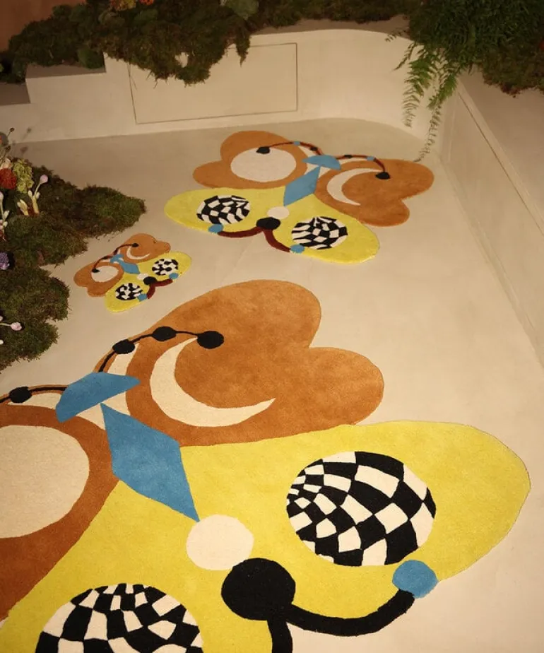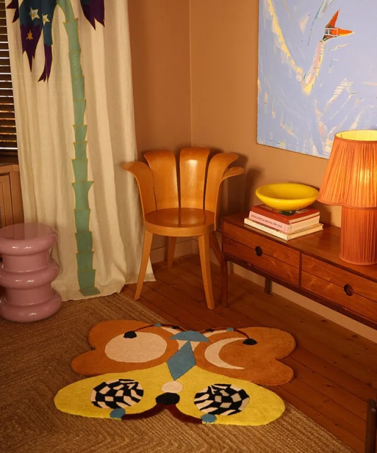 Susan Kelly Meinen X Doing Goods. Het Doing Goods Melody Moon butterfly vloerkleed is een speels en artistiek statement voor je huis. Onderdeel van de exclusieve Les Papillons-collectie. Gemaakt van 100% Nieuw-Zeelandse wol. Afmeting 85x100x2cm