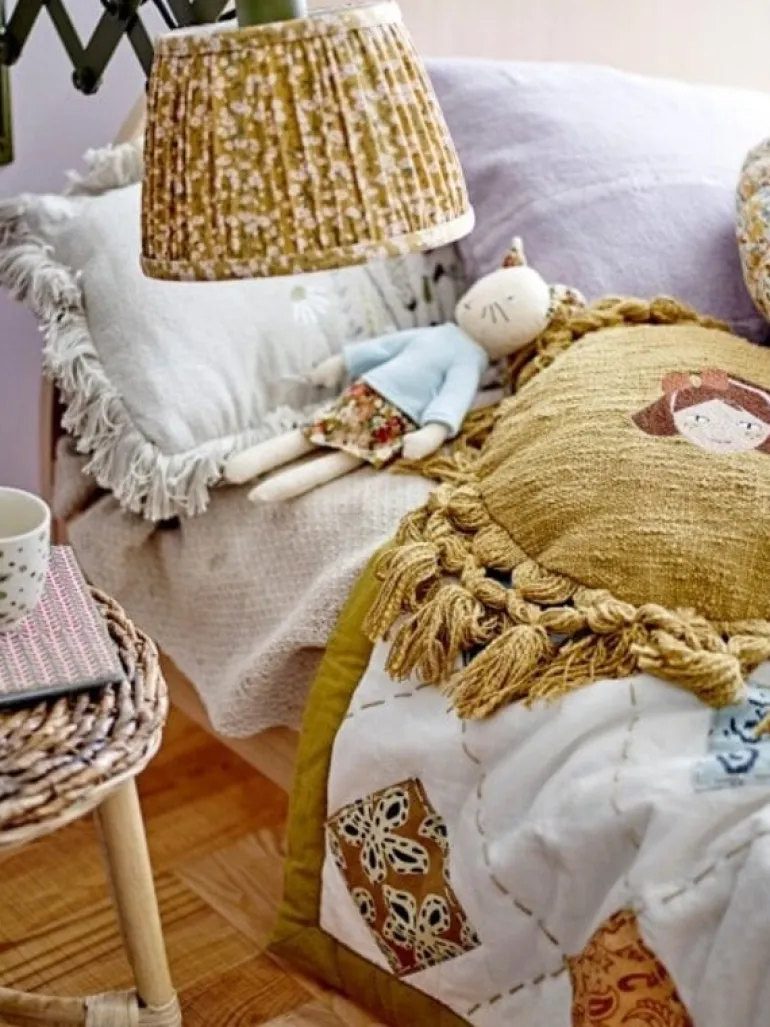 Groot plaid gemaakt van kantoen en linnen. Door de afmeting is het plaid perfect te gebruiken als een bedsprei voor een kinderbed. Het Bloomingville Melua plaid heeft een afmeting van L152xH0,25xW127 cm.