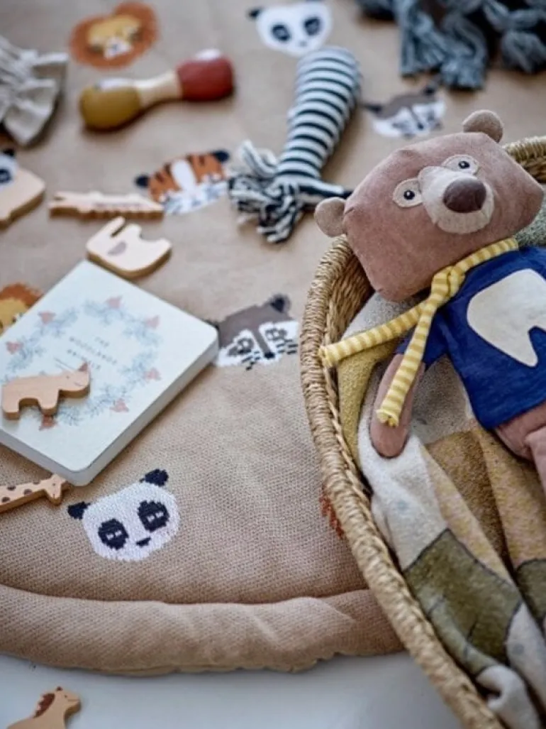 Leuke speelmat van het Deense interieurmerk Bloomingville Mini. De Bloomingville Mini Miko speelmat heeft een print met diertjes. Gemaakt van katoen met polyester vulling. Diameter 100cm.