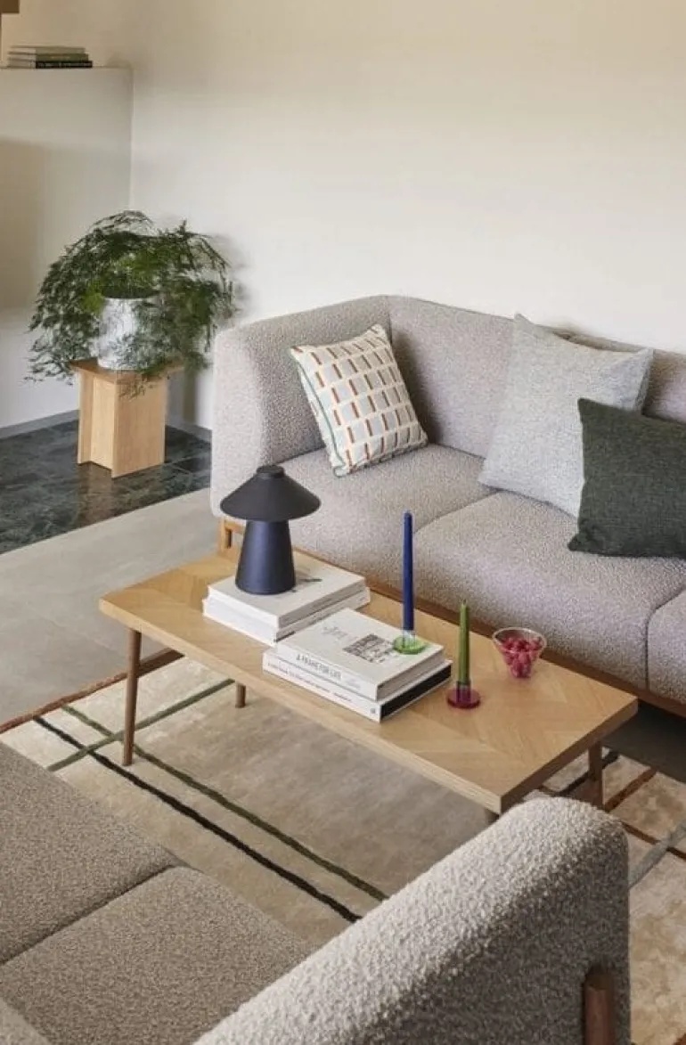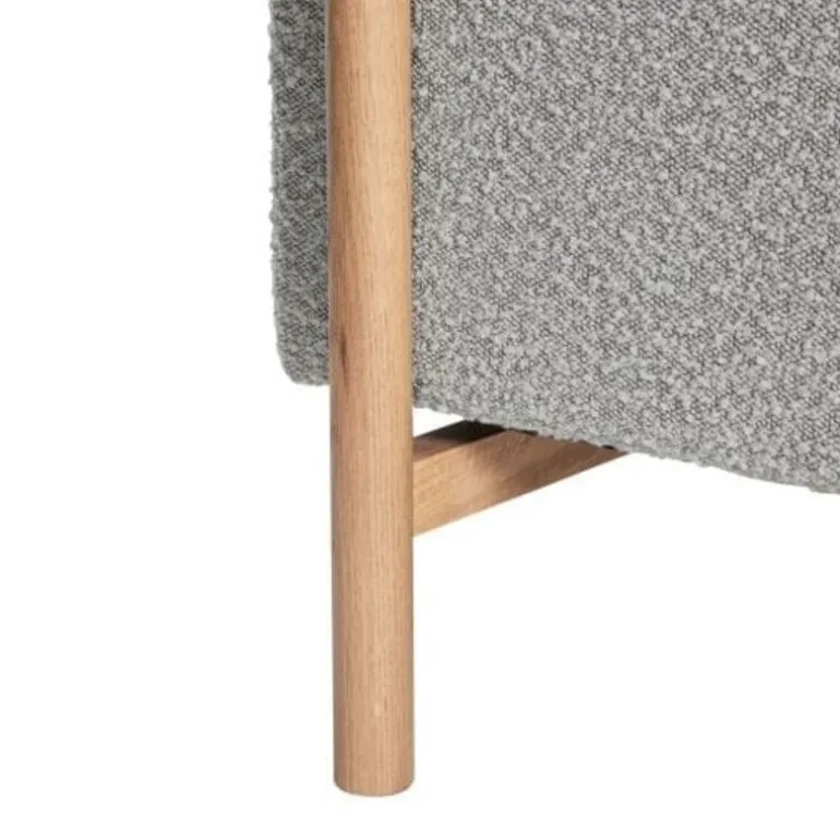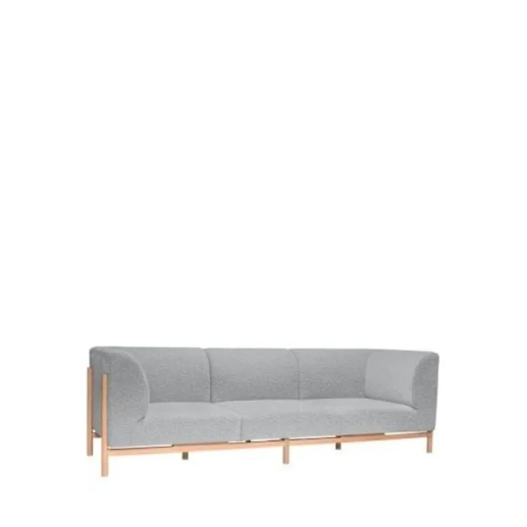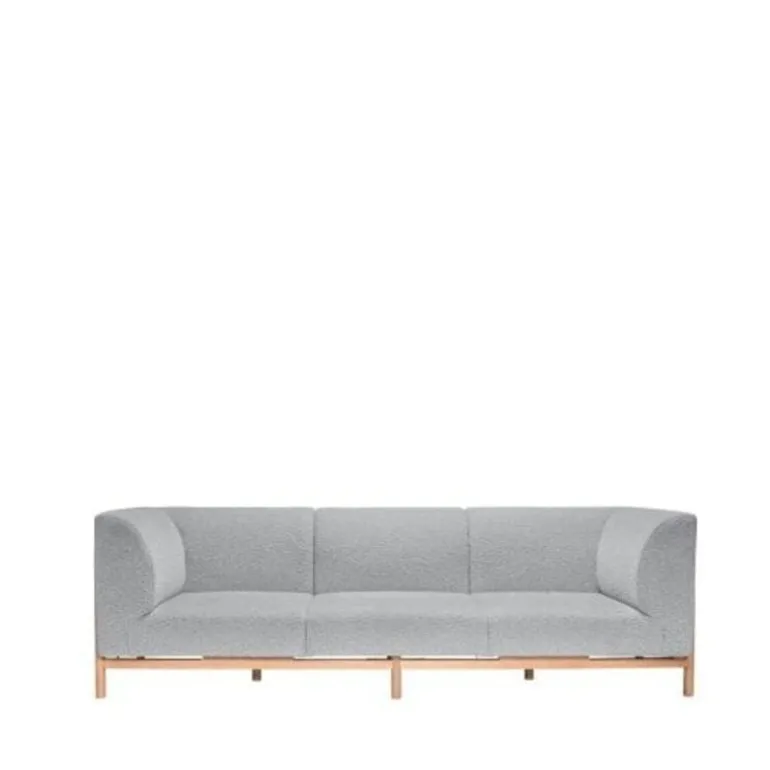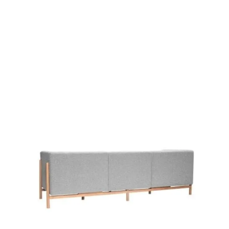 Wat een eyecatcher! Prachtige bank van het interieurmerk Hubsch. De Hübsch Moment bank is gestoffeerd met een grijze stof en heeft een eikenhouten onderstel. Ook beschikbaar in een 2 zits. Afmeting 257x89x80cm