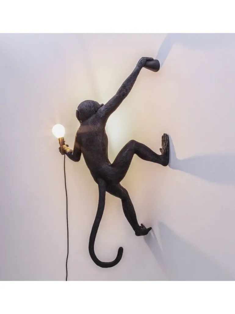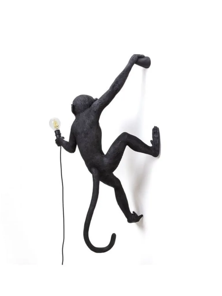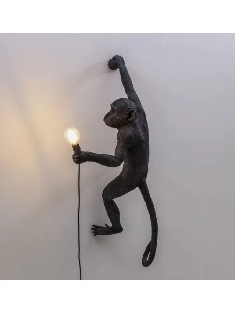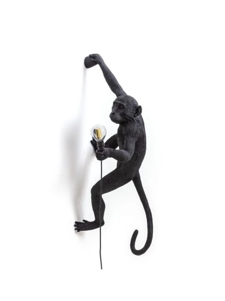 De bekende monkey lampen van Seletti! De hangende aap kan zowel binnen als buiten aan de wand opgehangen worden. De Seletti Monkey lamp hanging right is gemaakt van hars en heeft een E14 fitting. Wordt geleverd inclusief led lichtbol. 37×20,5 h.76,5cm