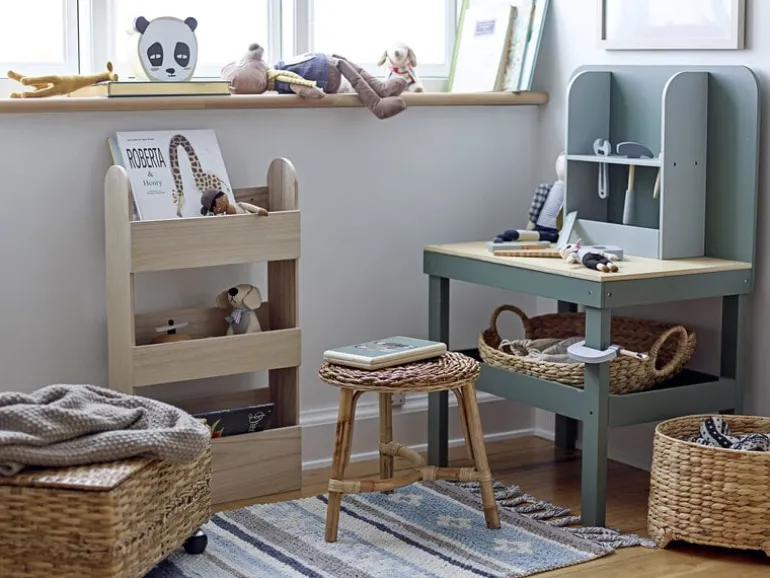 Leuke houten kast van het populaire Bloomingville Mini. De Moris kast heeft drie vakken waar makkelijk boeken en speelgoed in opgeborgen kunnen worden. Afmeting: L38xH70xW12 cm