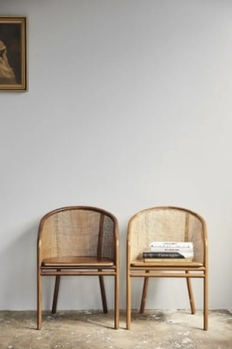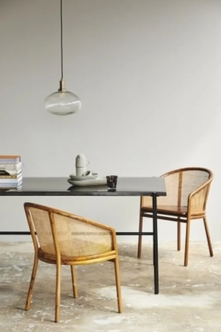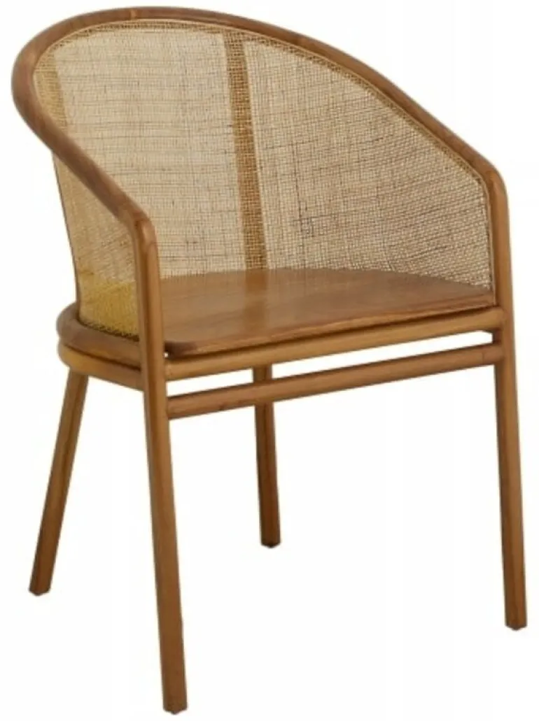 Prachtige teak houten stoel met rotan van Nordal. De Nordal Mosso stoel is beschikbaar in lichtbruin en donkerbruin. Afmeting 77cm hoog, 58cm breed en 54cm diep.