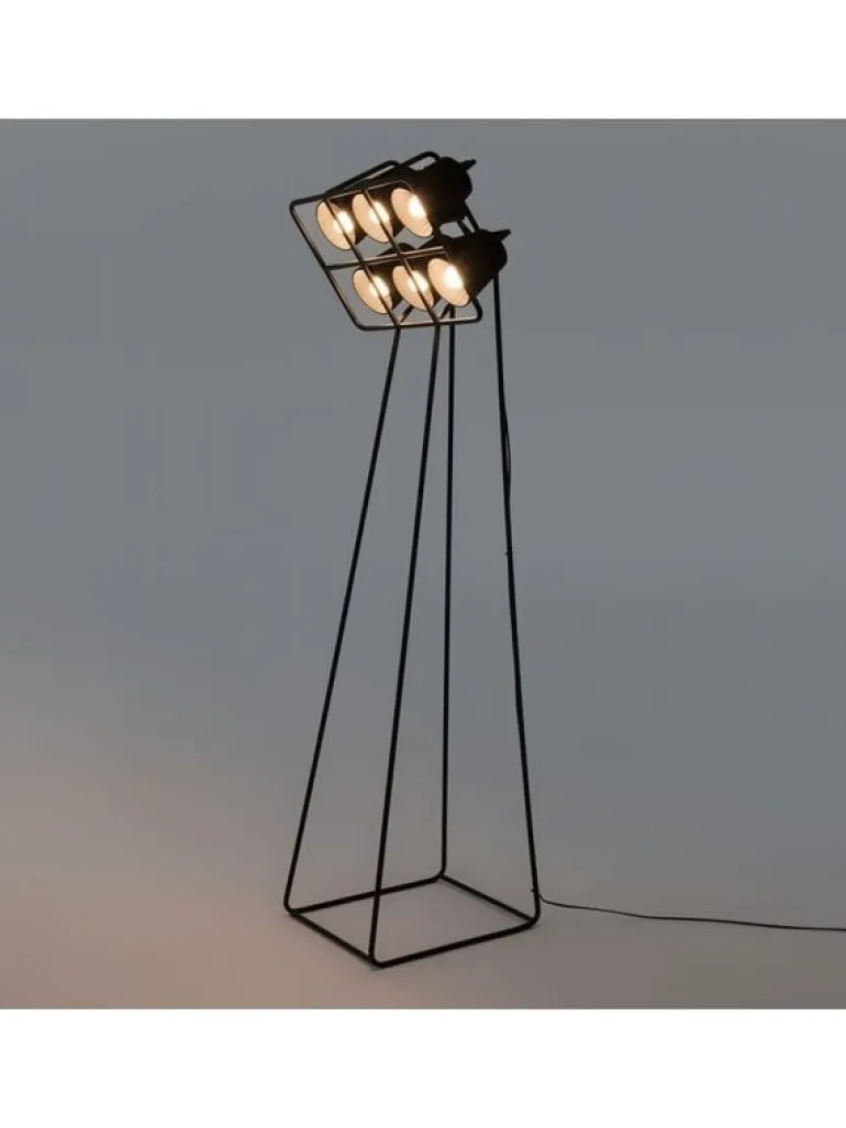 Mooie lamp van Seletti met een industrieel design, alsof de lamp zo van de filmset afkomt! De Seletti Multi vloerlamp heeft een afmeting van 53x51cm, hoogte 180cm.