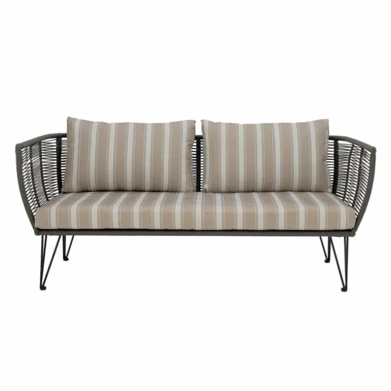 Prachtige sofa met kussens van Bloomingville. Deze Mundo bank is speciaal ontworpen voor buiten gebruik! Het frame is gemaakt van metaal, de zitting van polyester. Afmeting L175xH72xW74cm