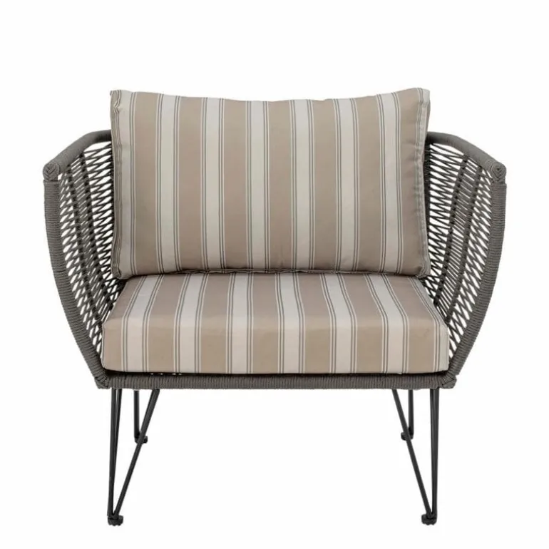 Prachtige loungestoel met kussens van Bloomingville. De Mundo loungestoel is speciaal ontworpen voor buiten gebruik. Het frame is gemaakt van metaal, de zitting van polyester. Afmeting L87xH72xW74 cm