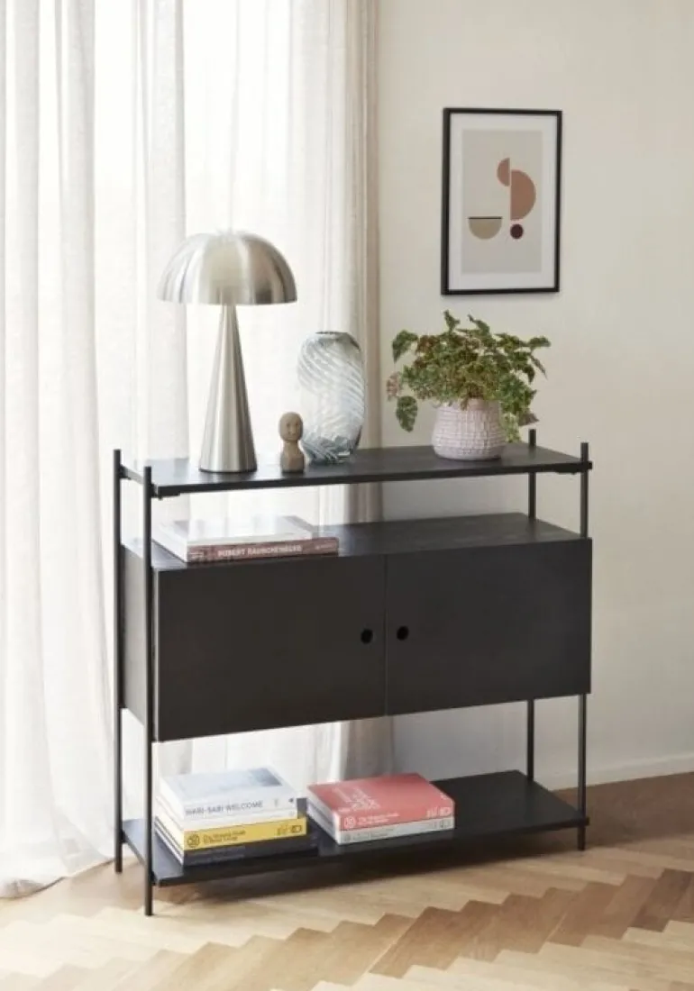 Moderne lamp van het Deense interieurmerk Hübsch. De zilver kleurige Hubsch Mush tafellamp tall is gemaakt van ijzer. Beschikbaar in verschillende kleuren en afmetingen. Afmeting Ø30x50cm
