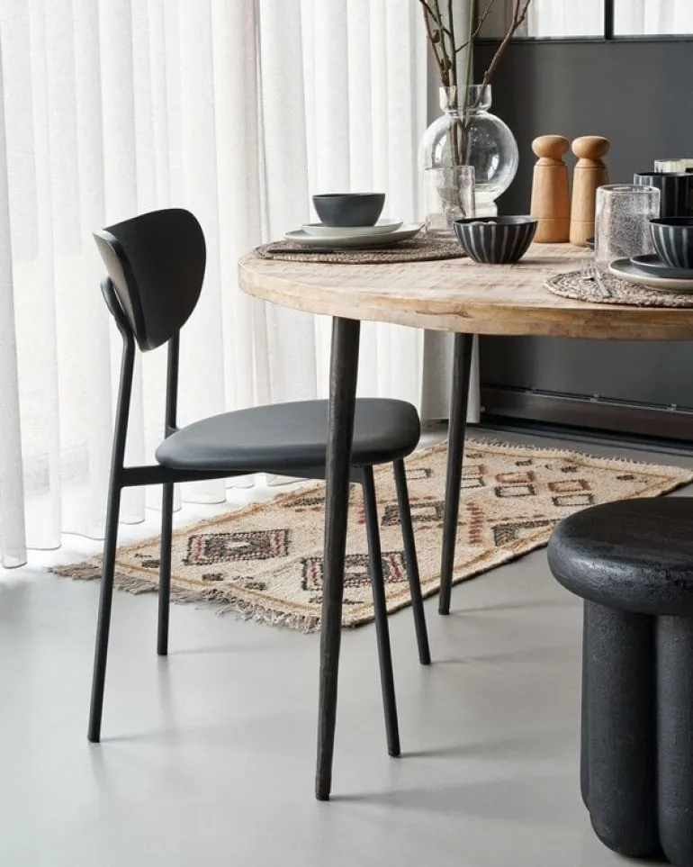 Perfecte stoel voor aan de eettafel van House Doctor. De House Doctor Must stoel heeft een houten rugleuning, stalen poten en de zitting heeft een leer look. Afmeting 51,5x49x80cm, zithoogte 46cm.