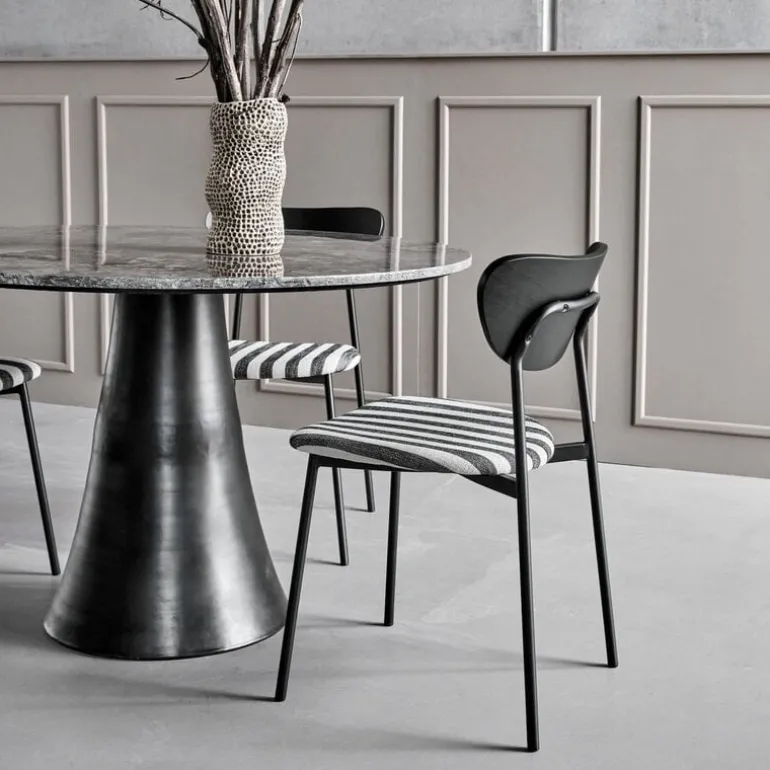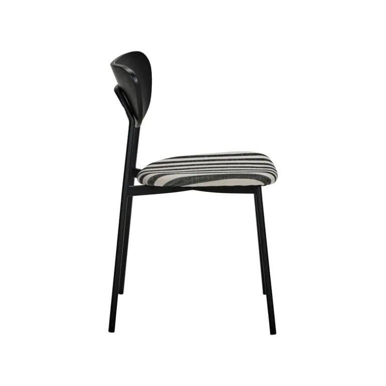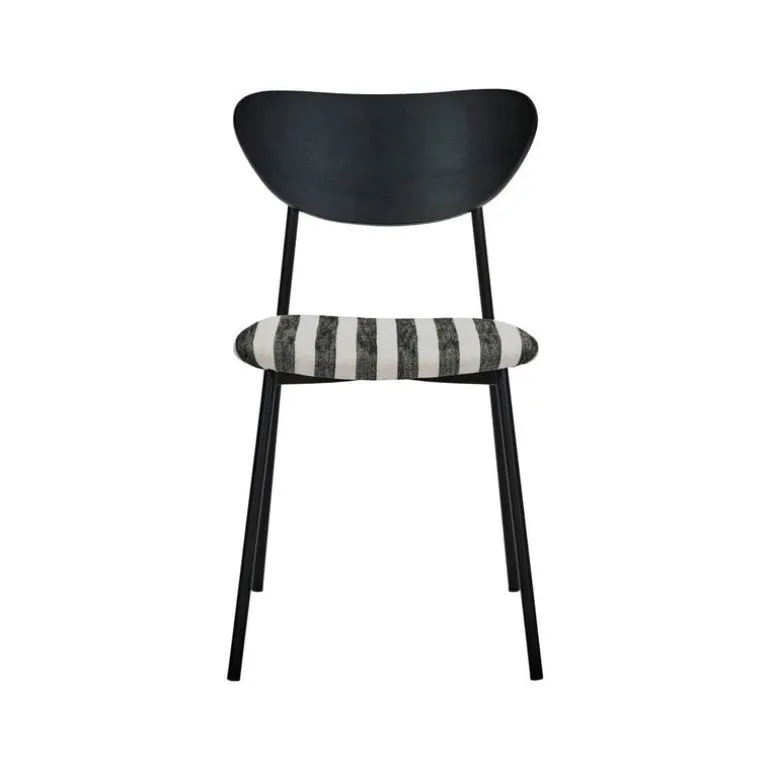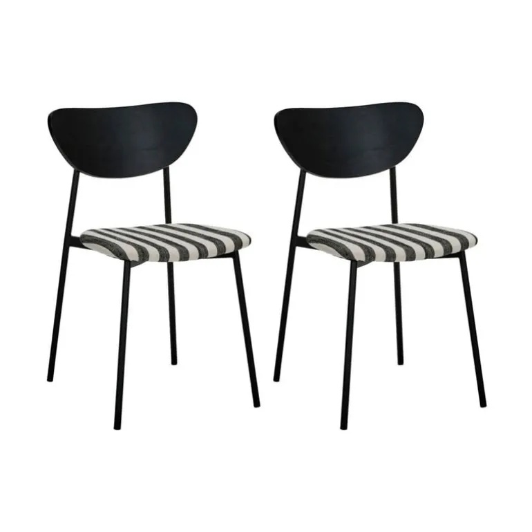 De House Doctor Must stoelen zijn erg elegant. De zitting heeft een zwart, wit gestreepte stof en de stoel heeft zwarte metalen poten. Wordt geleverd in een set van 2 stuks. Afmeting 51,5x46x80cm
