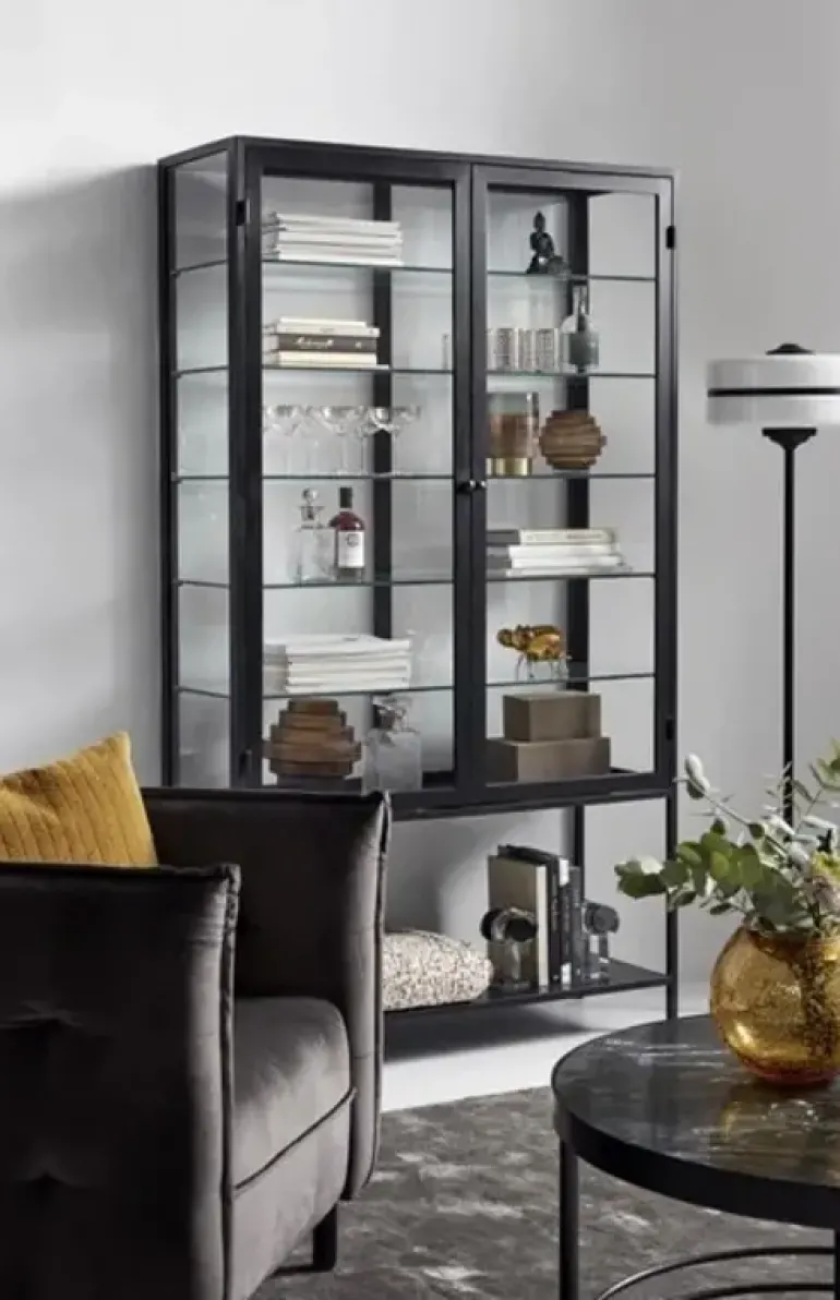 De Nordal Nanda kat heeft 6 planken en de deuren sluiten met een magneet. Afstand tussen de planken is 22,8cm en maximaal 12 kilo per plank. 112cm breed, 41cm diep en 198cm hoog.