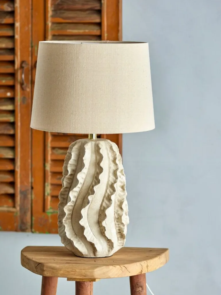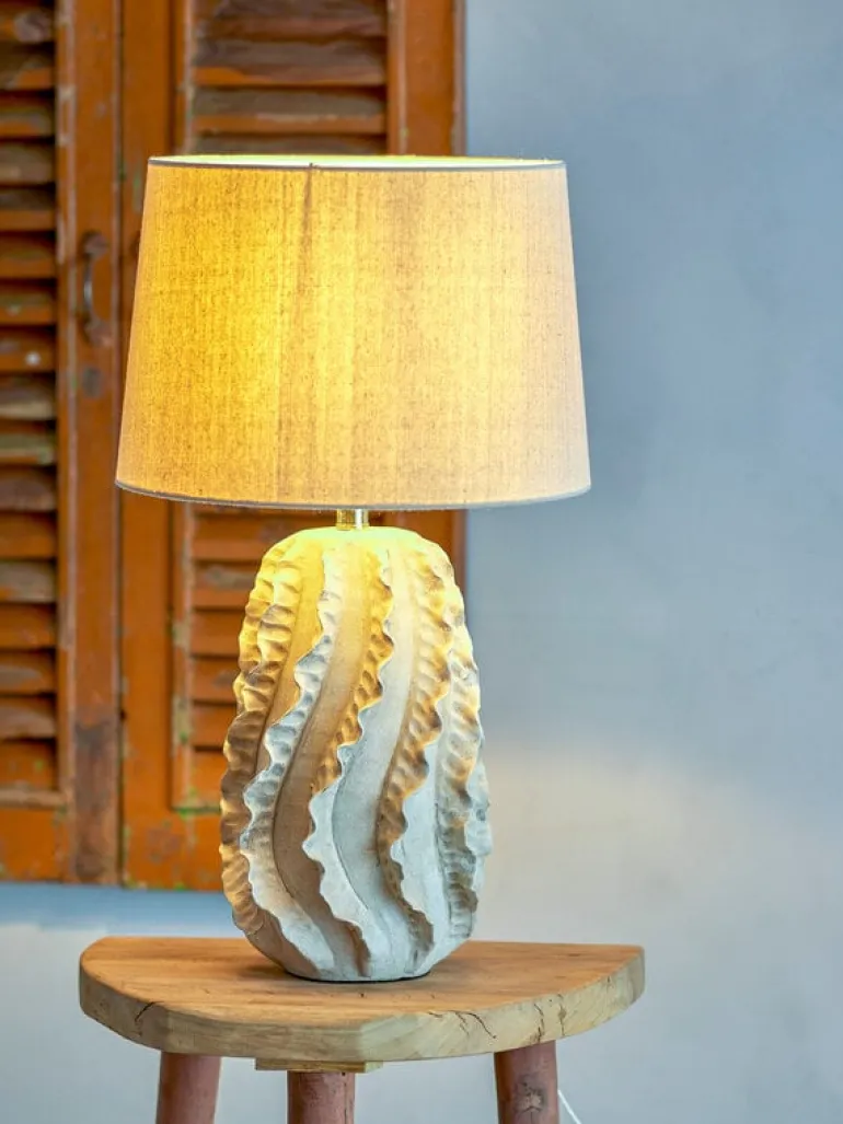 De Bloomingville Natika tafellamp heeft een opvallend design. De lampvoet is handgemaakt van terracotta in een prachtige vorm geïnspireerd op zee koraal met een linnen lampenkap. Afmeting Ø38x64cm