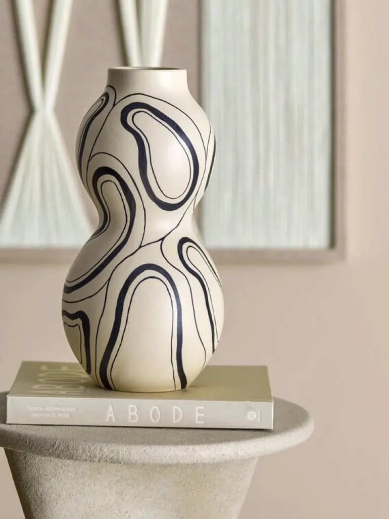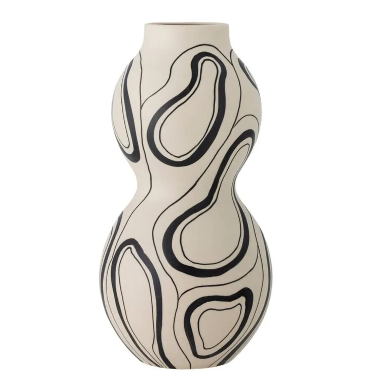 De Bloomingville Nicola vaas is versierd met een eenvoudig en mooi ontwerp. Het zwarte, organische patroon contrasteert prachtig met de neutrale basis. Afmeting Ø17,5x34cm