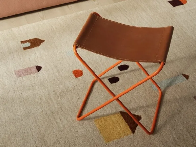 Leuke kruk uit de nieuwe Broste Copenhagen collectie. De kruk heeft een ijzeren onderstel en leren zitting. De Broste Copenhagen Nola kruk typeert zich vooral door de uitgesproken kleuren. Afmeting 39x31x45cm