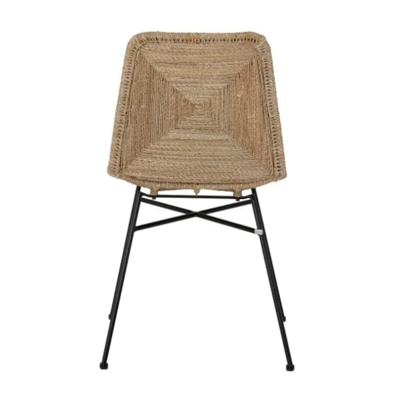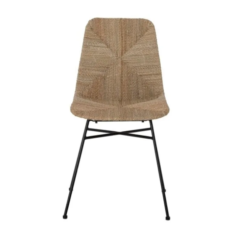 De Bloomingville Nor stoel heeft een ijzeren onderstel in de kleur zwart en de zitting is gemaakt van lampakanay. Afmeting 43x56x84cm
