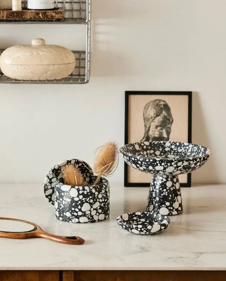 De Nordal Nusa decoratie schaal is gemaakt van terrazzo en heeft een afmeting van Ø20x14cm. Leuk om te combineren met de Mules opbergdoosjes.