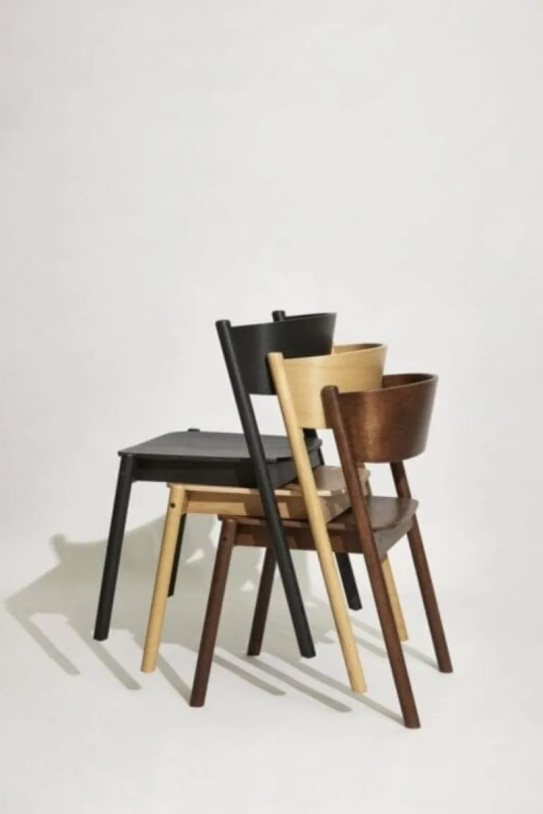 Mooie stoel van het Deense interieur merk Hubsch. De Hubsch Oblique stoel is gemaakt van eikenhout en eikenfineer. Beschikbaar in meerdere kleuren en afmetingen. Afmeting 55x51x80cm