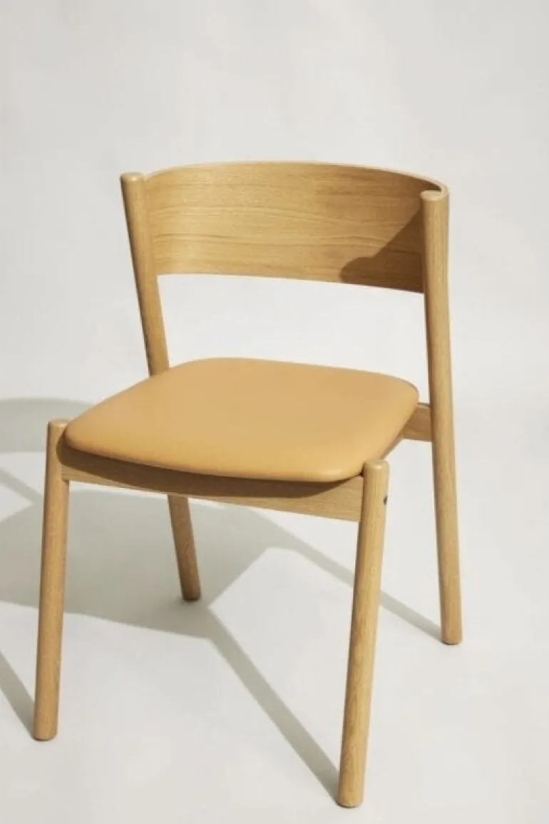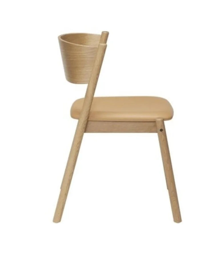 Mooie stoel van het Deense interieur merk Hubsch. De Hubsch Oblique stoel is gemaakt van leer, eikenhout en eikenfineer. Beschikbaar in meerdere uitvoeringen. Afmeting 55x51x80cm