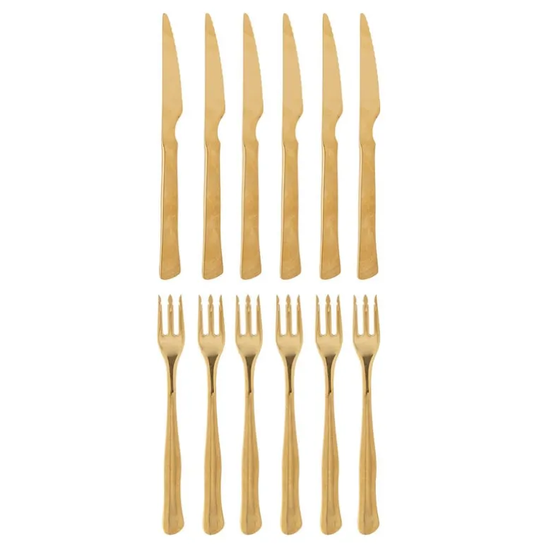 De Bloomingville Ollin bestek set bestaat uit 6 messen en 6 vorken. Ideaal om steaks mee te eten. Beschikbaar in twee kleuren. Gemaakt van roestvrijstaal.
