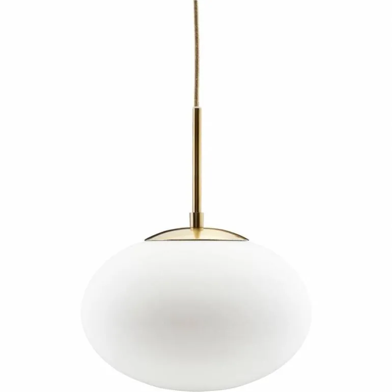 House Doctor Opal hanglamp met wit glazen kap. De House Doctor Opal lamp heeft een messing look frame en is prachtig te gebruiken boven de eetkamertafel of bij je favoriete leesplek. Leuk om te combineren met de Opal tafellamp.