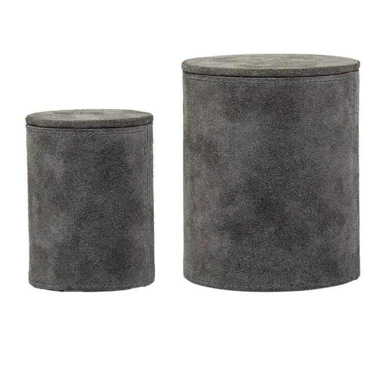 Mooie set opbergboxen met deksel van het prachtige interieurmerk Bloomingville. Deze set Bloomingville opbergboxen bestaat uit twee stuks met een verschillende afmeting. Gemaakt van grijs suede.