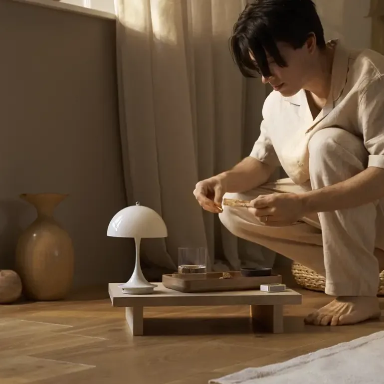 Prachtige draagbare lamp van Louis Poulsen. De Louis Poulsen Panthella 160 portable tafellamp is oplaadbaar. Hierdoor is de lamp overal te plaatsen. De lamp is dimbaar. Afmeting 16×24,1x16cm