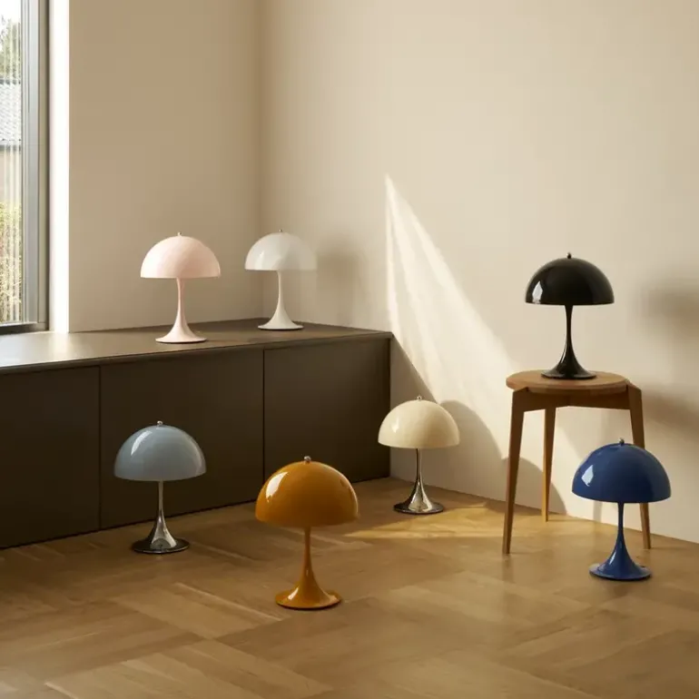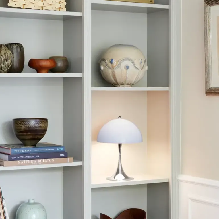 De Panthella 250 Portable tafellamp is een kleinschalige versie van de populaire Panthella tafellamp van Verner Panton. Dit model is eenvoudig te plaatsen op een vensterbank, plank of tafel. Afmeting 25x25x33,5cm