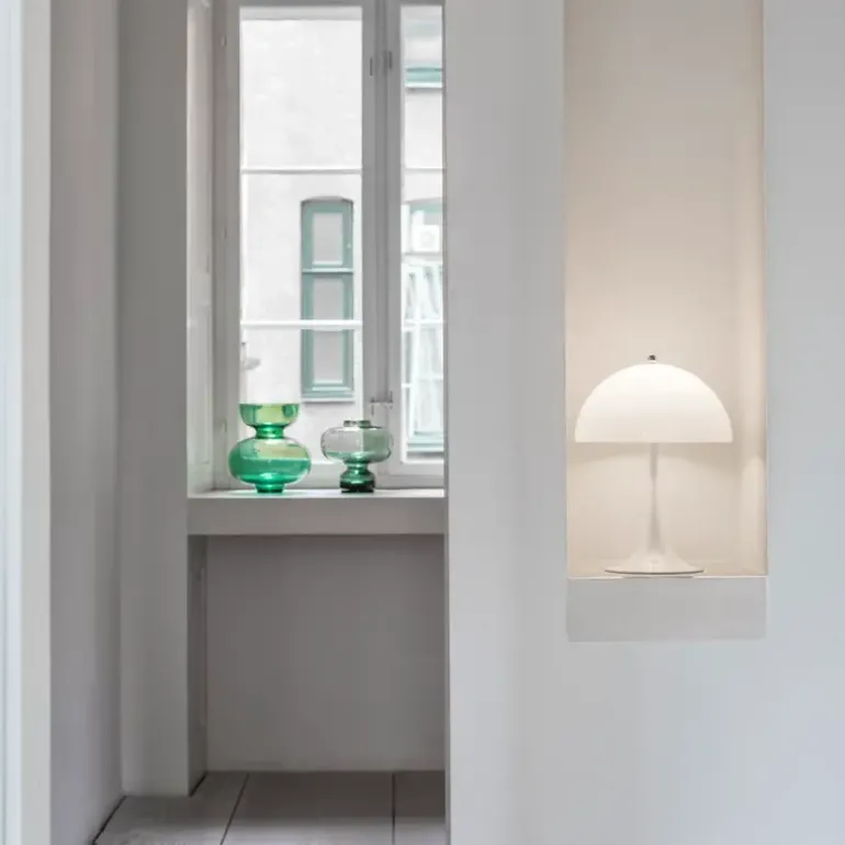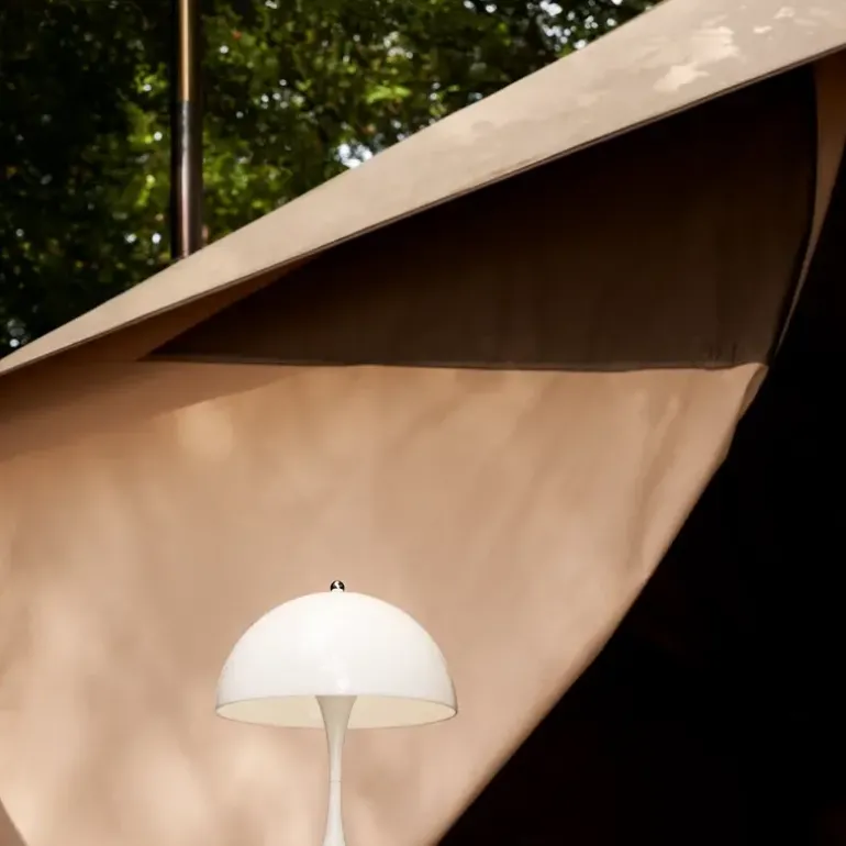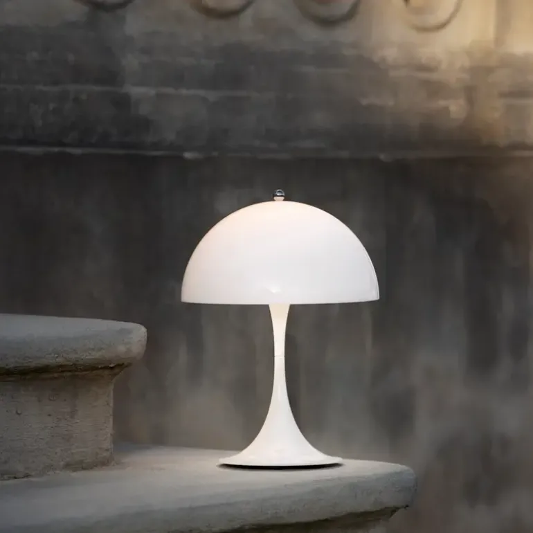 De Panthella 250 Portable tafellamp is een kleinschalige versie van de populaire Panthella tafellamp van Verner Panton. Dit model is eenvoudig te plaatsen op een vensterbank, plank of tafel. Afmeting 25x25x33,5cm