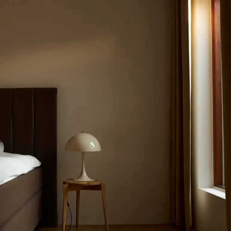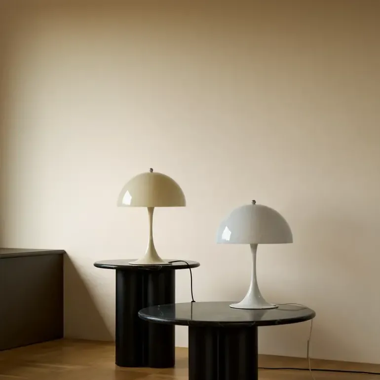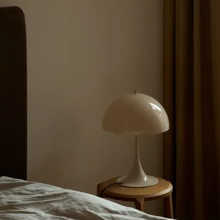 De Panthella lamp is ontworpen in 1971, een speels ontwerp. Vijftig jaar later is de Louis Poulsen Pantella 320 tafellamp ontworpen. De Panthella 320 is 32cm en daarmee groter dan de Panthella mini en kleiner dan de Panthella 400. Afmeting 32×43,8x32cm