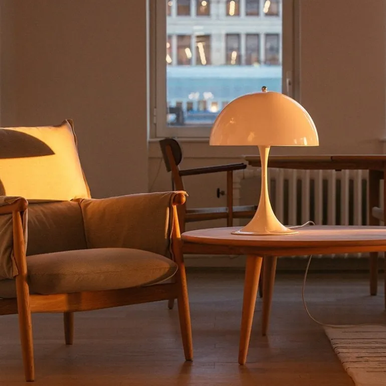 De Louis Poulsen Panthella 400 lamp is ontworpen in 1971 en nog steeds populair! De Louis Poulsen Panthella tafellamp straalt een zacht en comfortabel licht uit. Afmeting 40x55x40cm