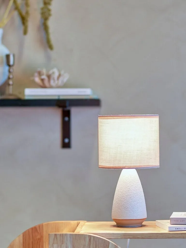 De Bloomingville Paprica Tafellamp is een kleine schoonheid in witte en beige kleuren. De voet is gemaakt van aardewerk en de lampenkap is van linnen. Plaats op een boekenkast, plank of als klein, gezellig nachtlampje. Afmeting Ø15×27,5cm