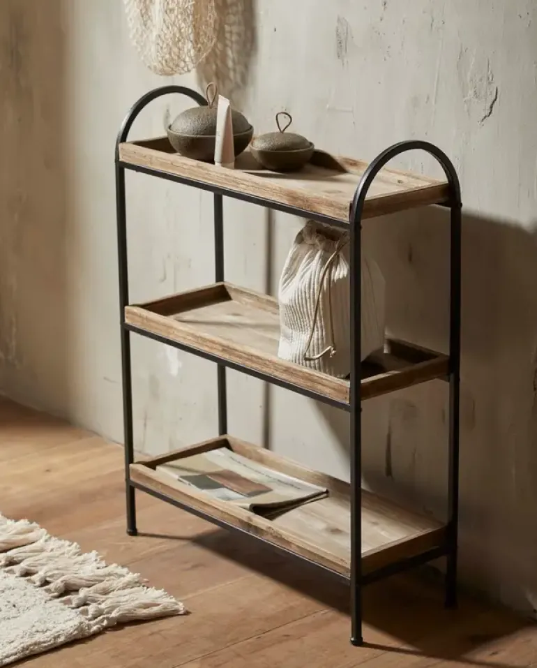 Tijdloos rek van het Deense interieurmerk Nordal. Het Nordal Patna rek is gemaakt van ijzer en gerecycled hout. Te gebruiken voor extra opbergruimte. Door het gebruikte materiaal is elk item uniek. Afmeting 83x24x63cm.