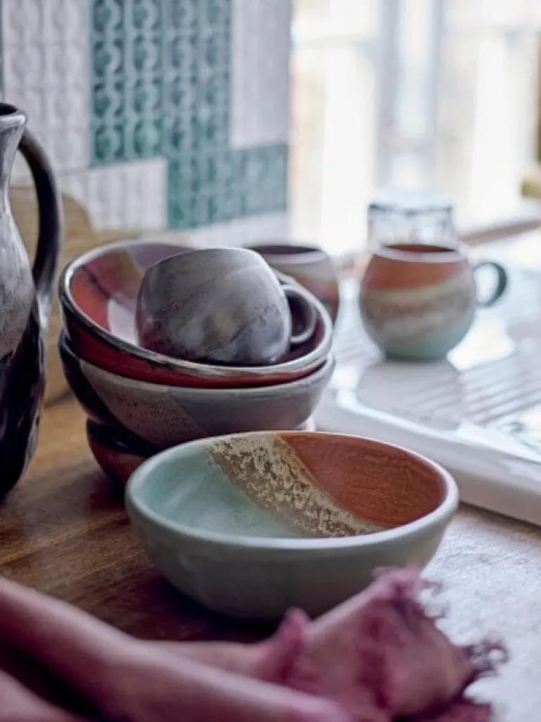 Prachtige Bloomingville Paula schaaltjes, gemaakt van aardewerk. De afmeting van de schaal is Ø16x6cm, inhoud 572ml. Wordt geleverd in een set van 4 stuks. Leuk te combineren met het andere Paula servies.