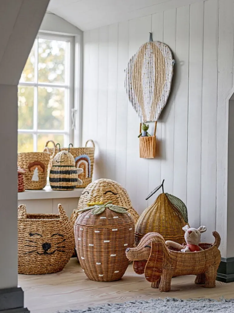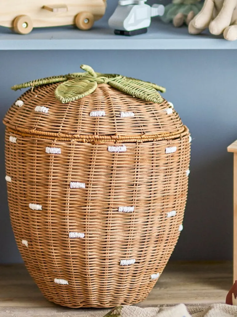 De Bloomingville Mini Pelino mand is een schattigste opbergoplossing in de vorm van een aardbei. Deze charmante mand is ideaal voor het opbergen van speelgoed. Afmeting Ø30x40cm