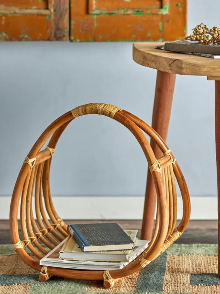 De Bloomingville Perla tijdschriftenhouder is gemaakt van rotan in een gezellig en rond design. De organische vorm combineert functionaliteit met esthetiek. Afmeting 42x45x30cm