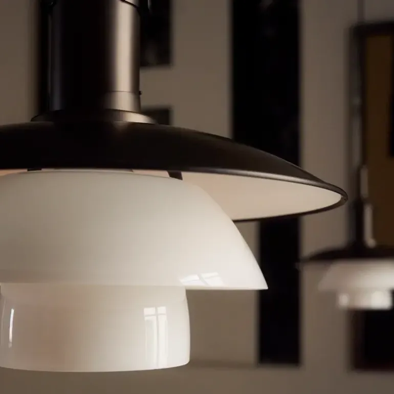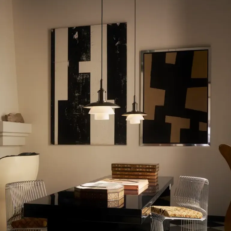 De Louis Poulsen PH 3/3 hanglamp is ontworpen door Poul Henningsen om hoog in een ruimte te plaatsen. Hij straalt comfortabel, diffuus en verblindingsvrij licht uit, kenmerkend voor het reflecterende systeem met drie kappen van PH.