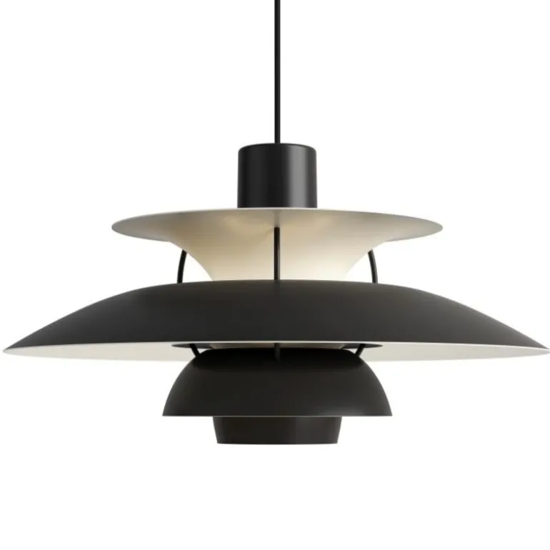 De Louis Poulsen PH 5 hanglamp is enorm populair en wij begrijpen waarom! Wat een eyecatcher is deze klassieker van Louis Poulsen. De lamp is gemaakt van aluminium en heeft een afmeting van 50×26,7x50cm. Beschikbaar in verschillende kleuren.