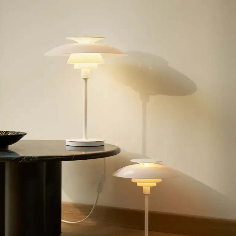 De PH 80 maakt deel uit van de beroemde ‘PH-serie’ van Henningsen en volgt zijn principes om verblindingsvrije verlichting te creëren door middel van meerdere lampenkappen. De Louis Poulsen PH 80 tafellamp is zowel functioneel als esthetisch. 32×40,5x32cm