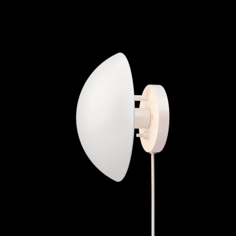 De Louis Poulsen PH Hat wandlamp is gemaakt van wit gelakt staal en de binnenkant is roze. De roze binnenkant zorgt dat het licht een warme kleurnuance krijgt. Afmeting 22,5×22,5×15,3cm