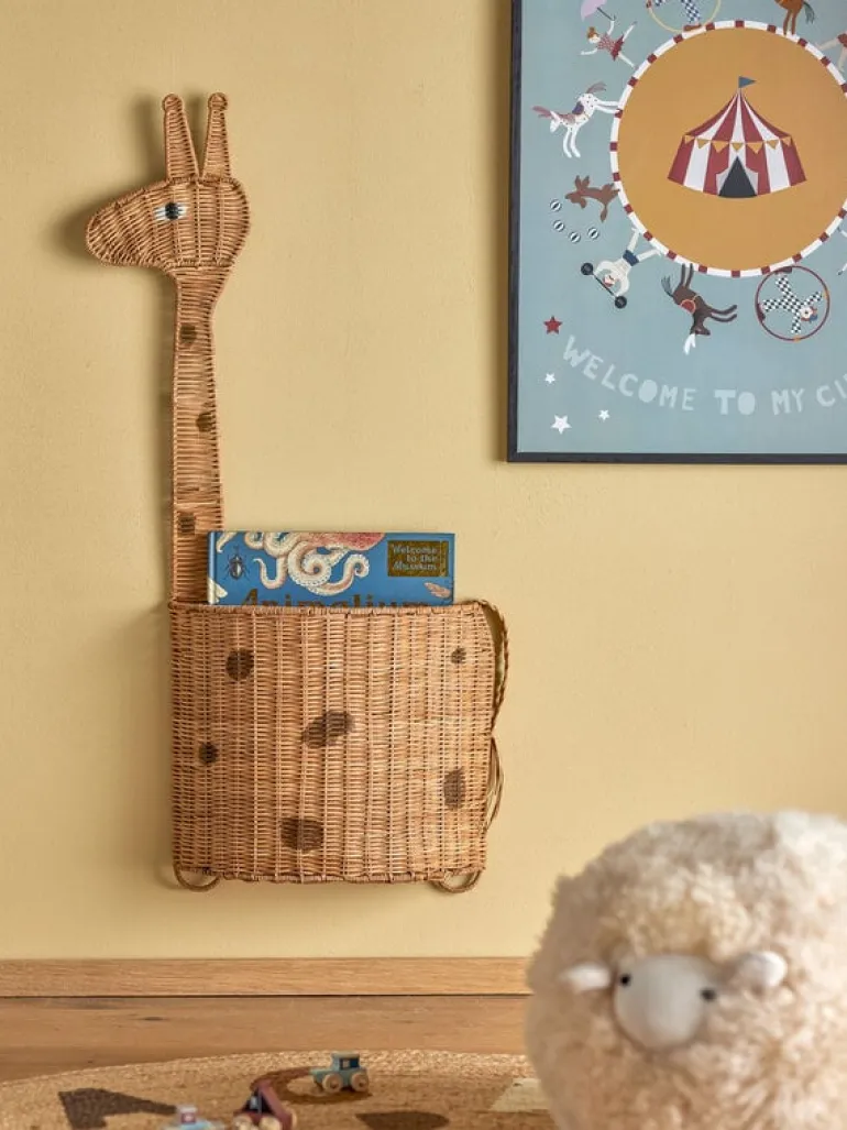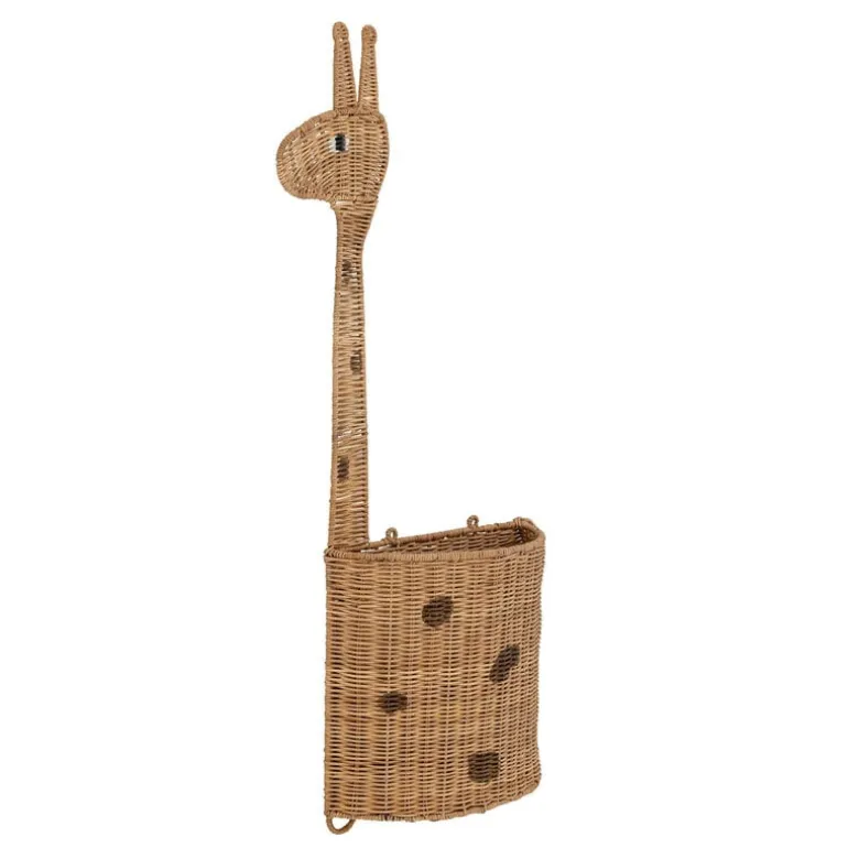 De Bloomingville Mini Philine mand is een grappige giraffe voor aan de wand. Deze unieke mand geeft een speciaal tintje aan de kinderkamer en is ideaal voor het opbergen van klein pluchen speelgoed of andere kleine schatten. Afmeting 46x13x90cm
